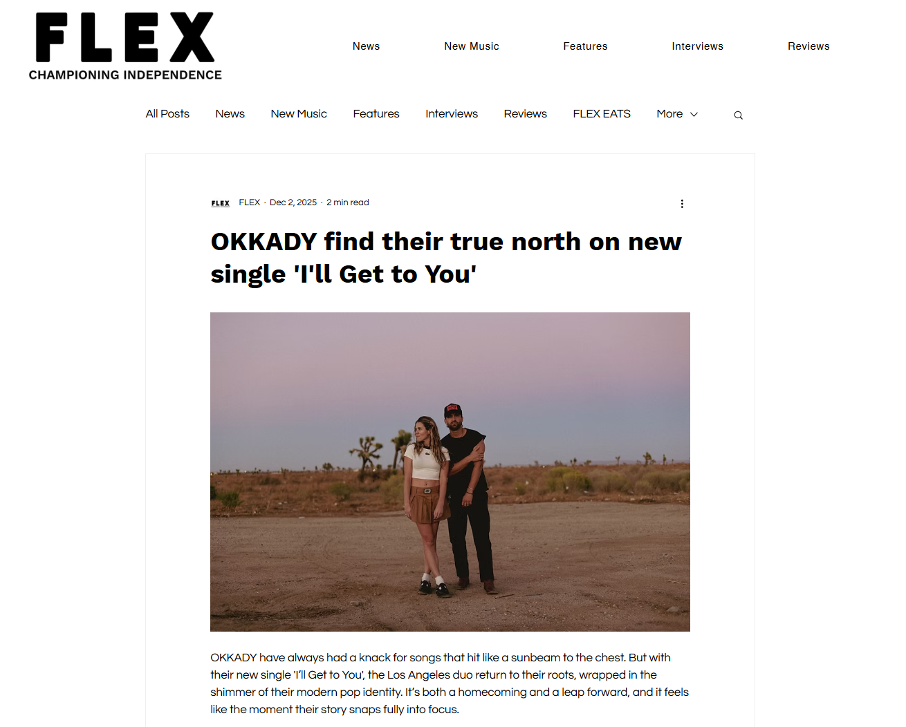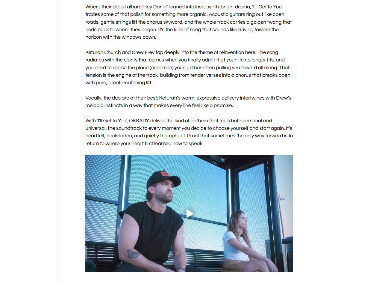 “OKKADY have always had a knack for songs that hit like a sunbeam to the chest. But with their new single 'I’ll Get to You', the Los Angeles duo return to their roots, wrapped in the shimmer of their modern pop identity. It’s both a homecoming and a leap forward, and it feels like the moment their story snaps fully into focus.”